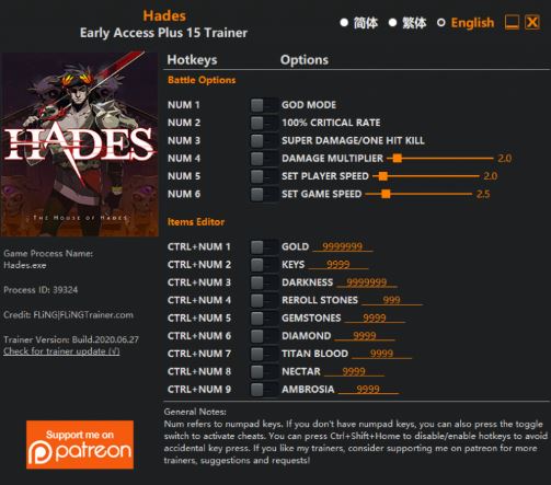 2. 이 트레이너는 64 비트 버전의 게임에서만 작동합니다.