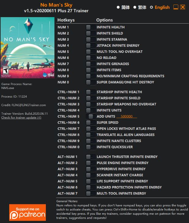 | 노 맨즈 스카이 트레이너 No Man’s Sky Trainer |